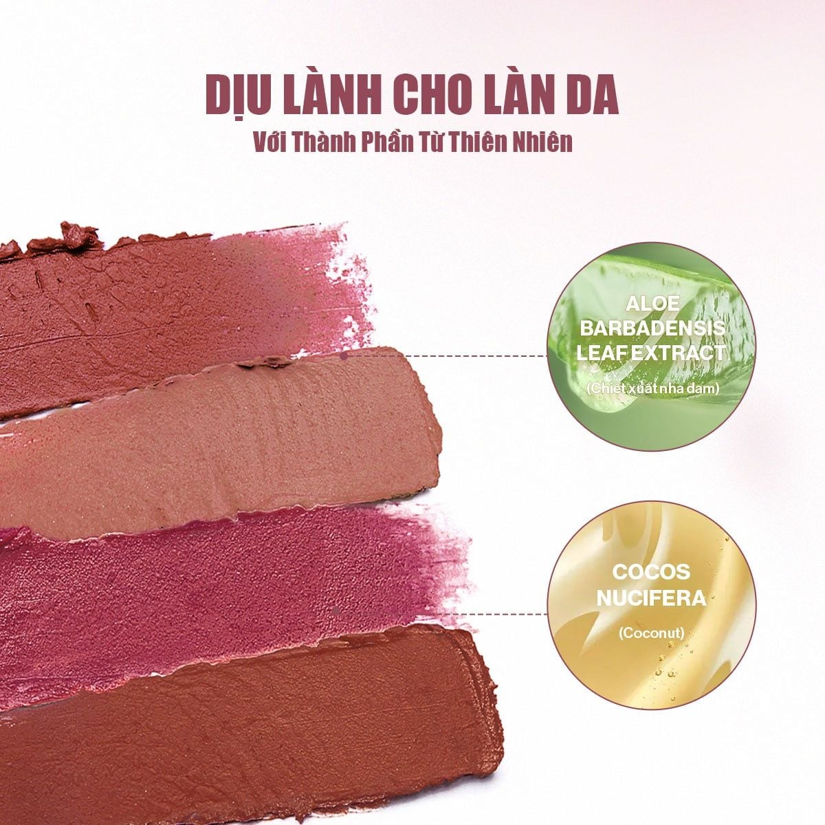 Dimethicone, Dimethicone/Vinyl Dimethicone Crosspolymer, Polyglyceryl-2 Triisostearate, Vinyl Dimethicone/Methicone Silsesquioxane Crosspolymer, Phenyl Trimethicone, Dicaprylyl Carbonate, Synthetic Wax, Caprylyl Methicone, Butylene Glycol Dicaprylate/Dicaprate, Microcrystalline Wax, Silica, Cetyl Alcohol, Lauroyl Lysine, Polyglyceryl-4 Isostearate, Coco-Caprylate/Caprate, Polyglyceryl-3 Polyricinoleate, Disteardimonium Hectorite, Sorbitan Isostearate, Mica, Aloe Barbadensis Leaf Extract, Cocos Nucifera (Coconut) Oil, Iron Oxides (CI 77491), Iron Oxides (CI 77492), Titanium Dioxide (CI 77891), Red 7 Lake (CI 15850), Blue 1 Lake (CI 42090), Silica, Triethoxycaprylylsilane, Tribehenin, 1,2-Hexanediol, Bis-Diglyceryl Polyacyladipate-2, Sorbitan Isostearate, Polyisobutene, Caprylic/Capric Glycerides.